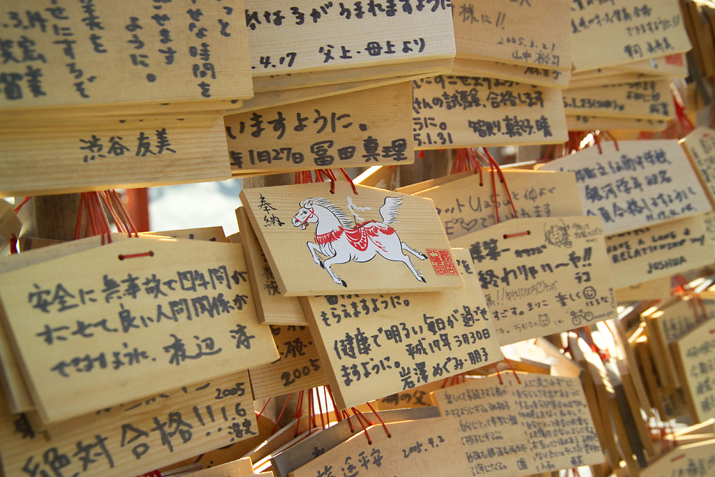 Ema au sanctuaire Tsurugaoka Hachiman-gu à Kamakura (Kanagawa) – Photo de Fg2 (Wikimedia Commons)