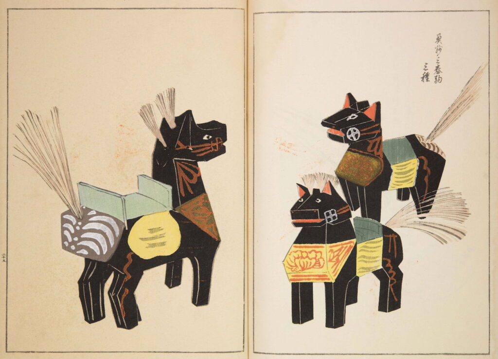 Dans le Tôhoku, région du nord-est du Japon où l’élevage équin est important, des artisans perpétuent la tradition de plus de 1 500 ans de réaliser des petits chevaux en bois richement décorés dont les plus connus sont les Miharu-Goma pour Fukushima et les Yawata-Uma pour Aomori. Les départements de Miyagi et d’Iwate ont aussi une production locale de ces jouets baptisés respectivement Kinoshita-Goma et Chagu Chagu Umaka. La boutique française Madame Haori chine au Japon pour ses clients divers kimonos et objets traditionnels et artisanaux et vous pourrez y acheter des haniwa et même des Miharu-Goma.
